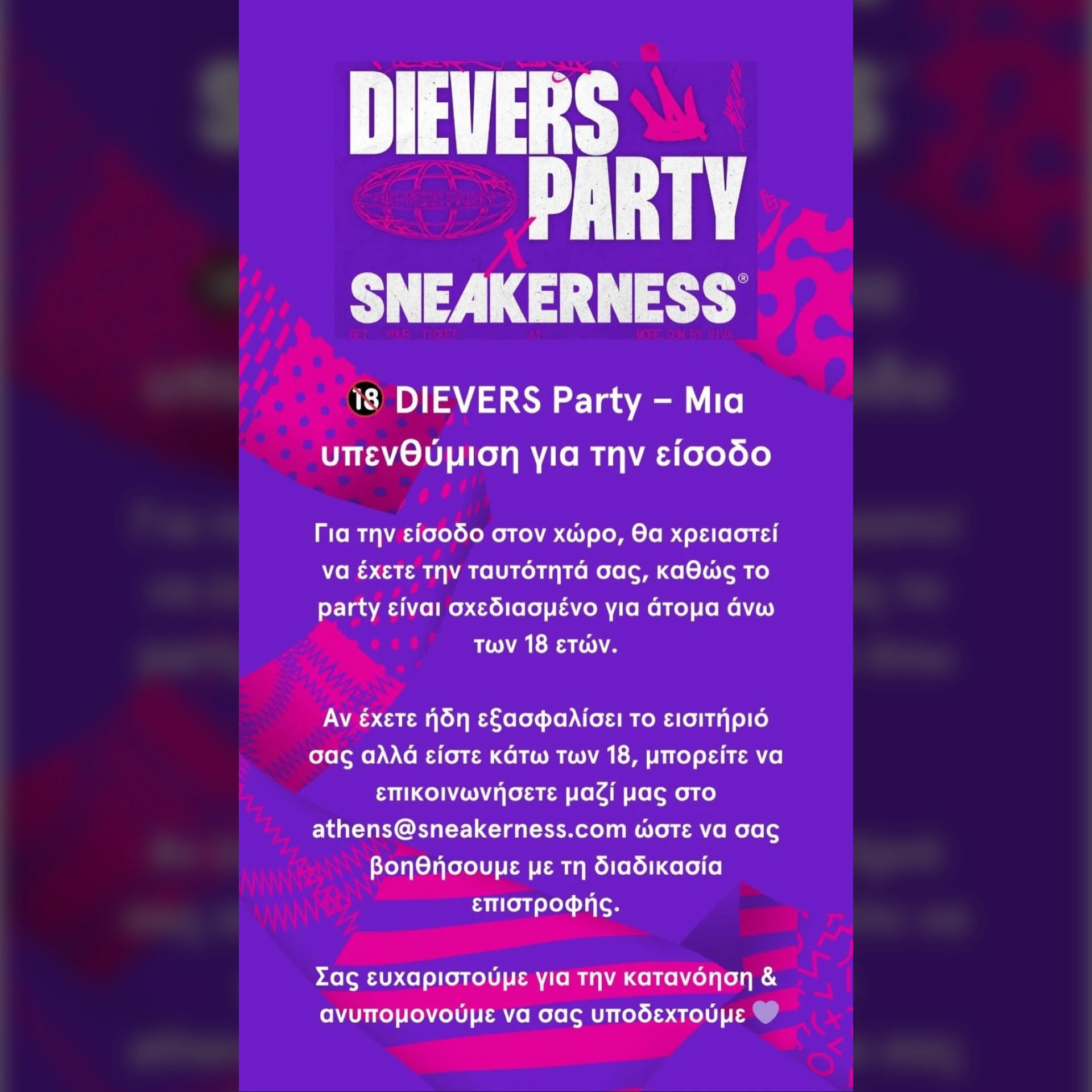Το πιο iconic collab της χρονιάς είναι εδώ! 🌐👟 DIEVERS PARTY ενώνει δυνάμεις με το Sneakerness και ετοιμάζουν ένα θρυλικό party που θα μείνει στην...