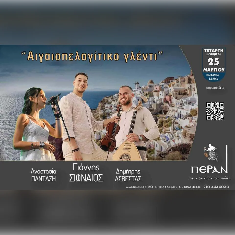 Αιγαιοπελαγίτικο γλέντι την 25η Μαρτίου το μεσημέρι, με μια υπέροχη παραδοσιακή ζυγιά - το δεξί χέρι στο βιολί του Νίκου Οικονομίδη, και τους Δημήτρη ...