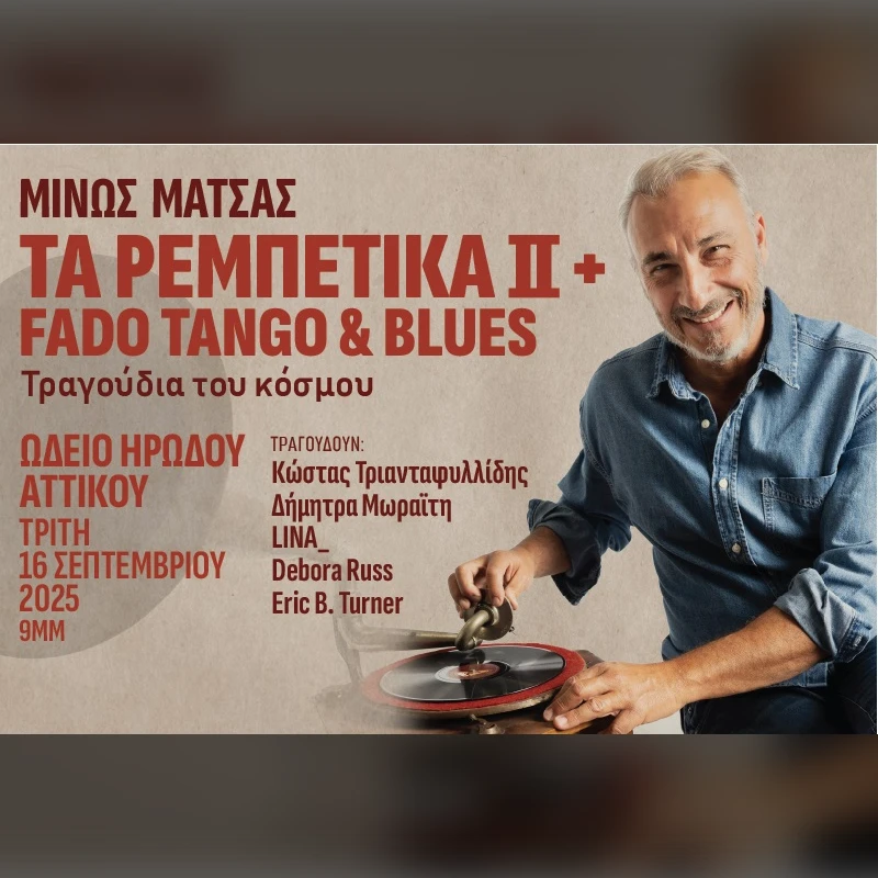 Μίνως Μάτσας Τα Ρεμπέτικα II +Fado & Tango & Blues Τα τραγούδια του κόσμου Σε συνέχεια του περσινού sold out στο Ηρώδειο, ο Μίν...