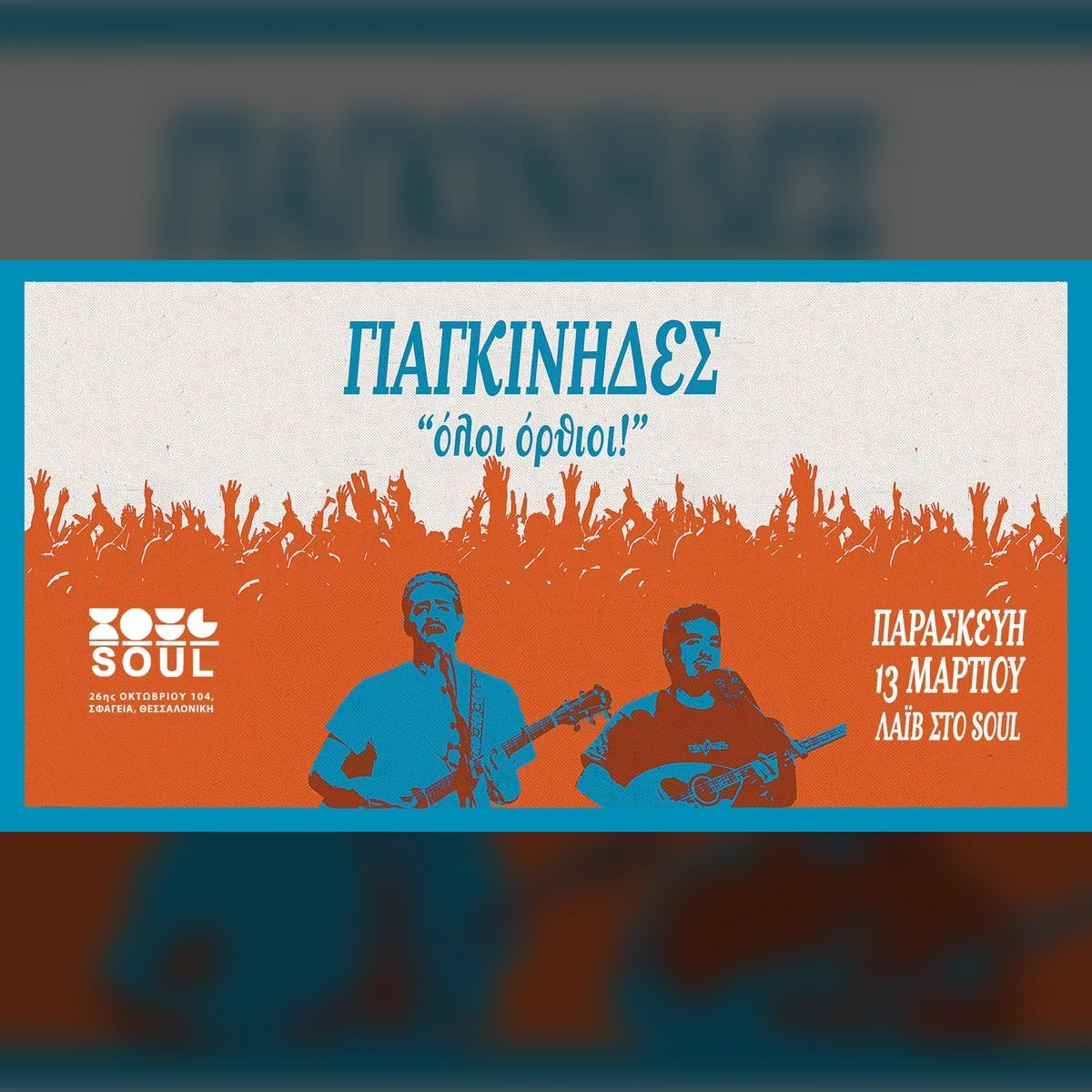 Οι Γιαγκίνηδες “όλοι όρθιοι” Σάββατο 13 Μαρτίου στο Soul Οι Γιαγκίνηδες το ρεμπέτικο-λαϊκό σχήμα που έγινε φαινόμενο, επιστρέφει εκεί απ’ όπου ξεκίν...
